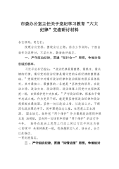 市委书记在党纪学习教育关于群众纪律研讨发言材料近日,按照省委和市委安排部署,深入学习了习近平总书记关于党的建设的重要论述精神,逐字逐句再次学习了新修订的《中国共产党纪律处分条例》,下面,结合工作实际和自身存在的一些问题,我就围绕“群众纪律”这一主题作如下研讨交流发言。一、认识体会党章明确规定:“党在任何时候都把群众利益放在第一位,同群众同甘共苦,保持最密切的联系。”中国共产党的百年发展历史表明,党来自于人民群众,植根于人民群众,人民群众是党不断发展壮大的力量源泉,正是依靠人民群众的支持,党才领导人民群众取得胜利,成为民心所向的执政党。党的群众纪律是党的各级组织和全体党员在贯彻执行党的群众路线和...