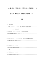(52篇)党委(党组)理论学习中心组学习情况报告、工作总结、理论文章、经验材料素材汇编(一)目录一、学习规则1.中国共产党党委(党组)理论学习中心组学习规则……………………………1二、党政机关2.中央党校(国家行政学院)党的建设教研部:坚持和善用理论学习中心组学习制度…………………………………………53.中共中央党校(国家行政学院)报刊社副总编辑熊若愚:提升理论学习中心组学习质量研究……………………………………………94.中共重庆市委中心组:坚持系统学习做到全面理解…………………………………………………155.中共陕西省委中心组:树立问题意识促进学习转化…………………………………………………1...