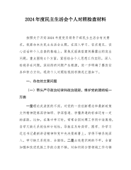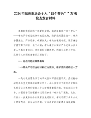 2024年度组织生活会个人对照检查材料(四个带头+上年度整改)(1)根据xx有关要求,我紧紧围绕本次组织生活会主题,结合自身实际情况,认真对照“四个带头”,全面深入查摆了自身存在的突出问题,认真分析了问题产生的原因,逐项明确了下一步整改措施。按照会议安排,现将个人对照检查情况汇报如下。一、上年度查摆问题整改落实情况在2023年度组织生活会上,我共查摆问题8条,并制定了“问题清单”,配套“整改方案”,确保条条有整改、项项见实效。经过一年来的持续整改,目前已全部完成,并取得了一定成效。在理论学习方面,我制定了“学习路线图”,坚持每日学习习近平新时代中国特色社会主义思想,把“碎片学”变为“体系学”,...