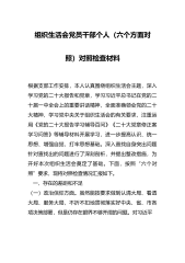 组织生活会对照“六个方面”(政治信仰、党员意识、纪律作风等)对照检查剖析材料 根据统一安排,会前本人认真开展学习研讨,学习了党的**大精神及习近平谈治国理政第四卷等内容,同时,广泛征求意见建议,深入开展谈心谈话,全面检视剖析问题,做了扎实充分准备。现对照检查如下。 一、存在的主要问题 (一)在政治信仰方面。自己对习近平新时代中国特色社会主义思想和党的创新理论,能够及时跟进、抓紧学习,在大是大非上能够坚守政治立场,深刻认识“两个确立”的决定性意义,但仍旧存在三个方面的不足:一是对“两个确立”认识上还不够深刻。对“两个确立”中蕴含的科学内涵、阐释的深刻道理,联系实际还不够贯通有力对“两个确立...