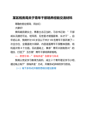 某区税务局关于青年干部培养经验交流材料:打造“五引领”青年干部培养新格局