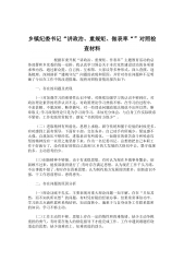 乡镇纪委书记“讲政治、重规矩、做表率“”对照检查材料 根据市委开展“讲政治、重规矩、作表率”主题教育活动的总体部署和乡党委的统一安排,我认真学习领会关于本次党性建设活动的各项要求和内容,通过群众提、自己找、互相帮、大家议等多种形式,深入查摆、逐条梳理、深刻剖析“遵规守纪”问题的表现和原因,并针对存在问题和不足明确了今后在工作中的改进措施。现将对照检查情况报告如下: 一、存在的问题及表现 (一)对加强学习的重要性认识不够。对继续加强学习的认识不够到位,对政治理论素养的培养认识不足,对政策理论学习热情不够,在学习的过程中,不求甚解、不愿深研、断章摘句。对一些理论问题政策法规说不出所以然,...
