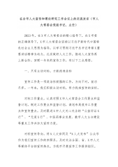 在全市人大宣传和理论研究工作会议上的交流发言(市人大常委会党组书记、主任)2023年,在X市人大常委会的精心指导下,在X市委的正确领导下,X市人大常委会坚持以习近平新时代中国特色社会主义思想为指导,以学习贯彻习近平总书记考察X重要讲话精神为动力,扎实做好人大工作,推动人大宣传再上新台阶。回顾一年来的宣传工作,有以下三点感悟。一、只有主动对标,才能找准坐标宣传工作是一项政治性极强的工作,方向不对,前功尽弃。一年来,我们积极主动对标,努力找准宣传的坐标。对标工作重点。认真对照X市人大常委会工作要点和监督计划,制定工作要点和监督计划,谋划布局我市工作重点和宣传重点。及时跟进X市人大关心关注的“公益诉...