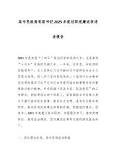 市委书记2025年度专题民主生活会对照检查发言材料(“五个带头”)根据中央、省委统一部署和市委工作安排,本人紧紧围绕本次民主生活会主题,在持续深化理论学习、广泛征求意见建议、深入开展谈心谈话的基础上,认真学习了党的二十大及二十届三中、四中全会精神,重温了习近平总书记在我省考察时的重要指示要求,深入研读了《中共中央办公厅关于在全党大兴调查研究的工作方案》精神以及中央纪委国家监委关于整治加重基层负担的形式主义、官僚主义典型问题的通报,聚焦对照检查的五个方面重点内容,结合市情实际和分管领域工作,深入查摆自身存在的突出问题,深刻剖析问题根源,并明确了今后的努力方向和整改措施。现将对照检查情况报告如下:...
