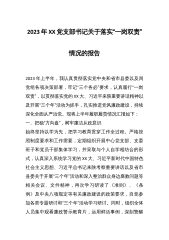 2023年XX党支部书记关于落实“一岗双责”情况的报告