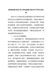 某市林业局2022年上半年总结及2022年下半年工作打算2022年xx市林业局认真贯彻落实习近平新时代中国特色社会主义思想和生态文明建设理念,按照全省林业工作会议及xx市林业局的总体要求,坚决执行市委、市政府的决策部署,践行生态保护的发展理念,以推进林长制为契机,以创建生态文明市为目标,以实施生态保护与修复为手段,着力推进森林质量提升,不断深化林业改革,切实加强我市林业各项工作。一、2022年工作开展情况(一)抓好党建工作。我局党委始终坚持以习近平新时代中国特色社会主义思想为指引,全面贯彻党的十九大和十九届二中、三中、四中、五中全会精神,深入落实习近平总书记考察xx重要讲话精神,以党史学习教育...