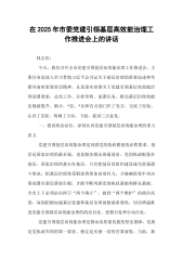 在2025年市委党建引领基层高效能治理工作推进会上的讲话