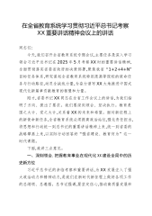 在全省教育系统学习贯彻习近平总书记考察XX重要讲话精神会议上的讲话同志们:今天,我们召开全省教育系统专题会议,主要任务是深入学习领会习近平总书记在2025年5月考察XX时的重要讲话精神,全面贯彻落实省委省政府的决策部署,聚焦我省“1+2+4+N”目标任务体系,研究谋划全省教育系统特别是高等院校的使命任务与行动路径,动员全战线力量,为奋力谱写XX大地推进中国式现代化新篇章贡献教育的智慧和力量。刚才,省委书记XX同志在全省工作会议上的讲话,为我们指明了方向、提出了要求。我们要深刻领会、坚决执行。教育是国之大计、党之大计,关系着XX的未来和希望。面对新征程上的新使命新任务,全省教育系统必须提高政治站...