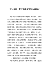 组织部长在2023年区委专题学习研讨党的大会精神会议上的发言同志们:习近平总书记强调:“要坚持真抓实干,激发全社会干事创业活力,让干部敢为、地方敢闯、企业敢干、群众敢首创。”事业成败,关键在人。广大干部应率先垂范、真抓实干,以敢为善为的政治担当带动地方敢闯、企业敢干、群众敢首创,为中国式现代化建设注入强大动能。一、校准选用“风向标”,推动政治素养“高站位”。党的二十大报告强调,要坚持把政治标准放在首位,做深做实干部政治素质考察。政治素质是干部的核心素质,政治把关是选人用人的首要任务。只有把政治标准放在首位,旗帜鲜明把政治过硬的导向树立起来,才能确保选出来的干部绝对忠诚、绝对纯洁、绝对可靠。要将...
