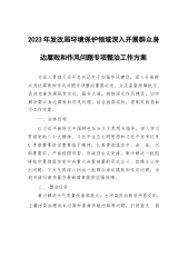 2023年发改局环境保护领域深入开展群众身边腐败和作风问题专项整治工作方案为深入贯彻习近平总书记关于加强作风建设,深入开展群众身边腐败和作风问题专项整治重要论述,立足监督保障执行、促进完善发展职责定位,服务大局,持续深化作风建设,切实解决群众身边腐败和作风问题,结合我局实际,现制定我局如下工作方案。一、总体目标以习近平新时代中国特色社会主义思想为指导,深入学习贯彻党的二十大精神、习近平生态文明思想和习近平总书记来X考察重要讲话重要指示精神,认真贯彻落实中、省、咸、兴部署要求,严格按照市委、市政府会议安排,集中解决一批阻碍我市贯彻落实党中央重大决策部署的形式主义、官僚主义突出问题,下力气再深入纠...