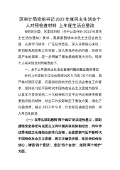 区审计局党组书记2022年度民主生活会个人对照检查材料---上年度生活会整改