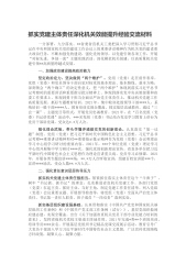 抓实党建主体责任深化机关效能提升经验交流材料一分部署,九分落实。**省委省直机关工委把深入学习贯彻习近平总书记在中央和国家机关党的建设工作会议上的重要讲话精神作为机关党的建设重大政治任务,不断加强党的建设,强化党的领导,以党建引领各项工作,开展“对标先进、争创一流”主题实践活动,深化模范机关创建,以高质量机关党建引领**高质量跨越式发展。一、加强政治建设提高政治能力坚定政治定力,坚决做到“两个维护”。党组(党委)走在前作表率。党组(党委)和党员领导干部自觉对标党的基本理论、基本路线、基本方略,深刻领会“两个确立”的决定性意义,把“两个维护”体现到落实习近平总书记考察时的重要讲话和重要指示批示精...