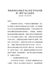 周保君局长在局机关“初心学堂”开学仪式暨第一期学习会上的讲话(2020年5月9日下午)同志们:为持续深化“不忘初心、牢记使命”主题教育成果,深入学习贯彻XJP新时代中国特色社会主义思想、深入贯彻落实XJP总书记来陕考察重要讲话精神,引导党员领导干部坚持不懈用党的创新理论滋养初心、引领使命、凝神聚力推动应急管理事业创新发展。根据中省市文件精神和局党组《2020年党建工作意见》安排,我局从本月起开设局机关“初心学堂”,定期组织党员领导干部集中学习教育、研讨交流。昨天已印发了《局机关“初心学堂”学习计划安排的通知》,明确了贯穿全年的“初心学堂”学习计划。今天下午,我们正式举办局机关“初心学堂”第...