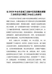 在202X年全市县域工业集中区高质量发展暨工业经济运行调度工作会议上的讲话