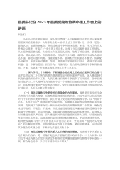 县委书记在2023年县委反腐败协调小组工作会上的讲话同志们:今天会议的主要任务是,深入学习贯彻二十大精神和习近平总书记来陕考察重要讲话重要指示,认真落实县委**届*次全会工作部署,进一步统一思想、提高认识,加强协调配合,推动反腐败斗争向纵深发展。刚才,学习了有关文件和会议精神,听取了*个单位的工作汇报,通报了全县反腐败协调工作情况。从汇报和通报情况看,大家的工作还是很扎实的,取得了明显成效,县委是满意的,群众是认可的。但客观来说,仍存在不少问题:成员单位主动配合意识还不强,移送问题不均衡、线索质量不高,协调配合的机制还不健全,协调配合的程序、手续还相对繁琐,等等,都需要大家持续加以改正。希望大...