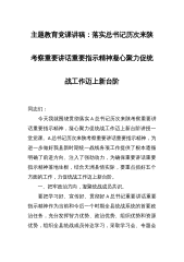 主题教育党课讲稿:落实总书记历次来陕考察重要讲话重要指示精神凝心聚力促统战工作迈上新台阶同志们: 今天我就围绕贯彻落实A总书记历次来陕考察重要讲话重要指示精神,凝心聚力促统战工作迈上新台阶讲授一堂党课。A总书记历次来陕考察重要讲话重要指示精神,为进一步做好我县新时期统一战线各项工作提供了根本遵循明确了前进方向、注入了强劲动力,为确保重要讲话重要指示精神落地生根,结合天洲县情实际,要重点抓好五个方面的工作,力促统战工作迈上新台阶。 一、把牢政治方向,凝聚统战成员共识。 要把学习好、宣传好、贯彻好A总书记重要讲话重要指示精神作为当前和今后一个时期全县统战系统的首要政治任务,充分发挥智力优势、...