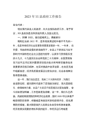 2023年XX县人民政府工作报告各位代表:现在,我代表县人民政府向大会报告政府工作,请予审议,XX县政协各位委员和其他列席人员提出意见。回首2022年,我们凝心聚力谋发展2022年,我们坚持以习近平新时代中国特色社会主义思想为指导,深入学习贯彻党的二十大精神,贯彻落实习近平总书记来闽、来明考察重要讲话精神,紧紧围绕“疫情要防住、经济要稳住、发展要安全”重要要求,聚焦“三提三效”[X]、聚力真抓实干,经济社会保持良好发展态势。据初步统计(下同),2022年全X区生产总值增长X.X%;地方一般公共预算收入增长X%;农林牧渔业总产值X.X亿元,增长X.X%;规模以上工业增加值增长X.X%;固定资产投...
