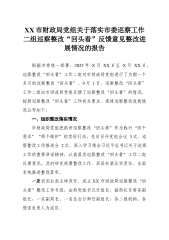 XX市财政局党组关于落实市委巡察工作二组巡察整改“回头看”反馈意见整改进展情况的报告根据市委统一部署,2025年X月XX日至X月XX日,巡察整改“回头看”工作二组对市财政局党组进行了为期一个多月的巡察整改“回头看”。9月1日,巡察整改“回头看”工作二组向市财政局党组反馈了巡察整改“回头看”的情况。按照巡察整改“回头看”工作有关要求,现将巡察整改进展情况公布如下:一、组织整改落实情况市财政局党组把抓好巡察整改“回头看”作为践行“四个意识”“两个维护”的实际行动,先后召开党组会议3次、巡察整改工作推进会2次,深入学习领会习近平总书记关于巡视工作的重要讲话精神,认真落实巡察整改“回头看”工作二组反馈...
