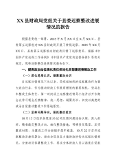 XX县财政局党组关于县委巡察整改进展情况的报告.