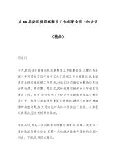 在XX县委巡视巡察整改工作部署会议上的讲话(精品)同志们:今天,我们召开县委巡视巡察整改工作部署会议,主要任务是深入学习贯彻习近平总书记关于巡视工作的重要论述,全面落实上级巡视巡察工作要求,对我们当前面临的整改任务进行再动员、再部署、再压实,同时统筹安排好岁末年初各项重点工作。刚才,会议传达了上级关于党政机关落实习惯过紧日子、规范公务接待等重要文件精神,通报了违规打牌赌博的典型问题,相关同志也对具体工作作出了安排。大家要认真领会,坚决抓好贯彻落实。这次会议,既是一次问题导向的警示教育会,也是一次责任上肩的政治任务交办会,更是一次决战决胜全年目标的加压冲刺会。下面,我讲四点意见。一、提升政治站位...