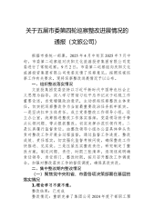 县纪委关于市委联动巡察组巡察县纪委监委机关反馈意见整改进展情况的报告按照市委巡察工作领导小组统一部署,2024年*月*日至*月*日,市委第二联动巡察组对*县纪委监委机关开展了联动巡察,2025年*月*日反馈了巡察情况。按照巡察工作有关要求,现将巡察反馈意见集中整改进展情况报告如下。一、党组(党委)及主要负责人组织落实整改情况(一)提高政治站位,统一思想认识。坚决把巡察整改作为践行“两个维护”的试金石,市委第二联动巡察组反馈意见后,县纪委监委第一时间召开纪委常委会会议,传达学习总书记关于巡视整改系列重要讲话及《关于加强巡视整改和成果运用的工作措施》等文件,筑牢抓好巡察整改工作的思想根基。召开巡察...