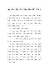 XX县机关事务中心支部委员会关于巡察整改进展情况的报告根据县委统一部署,2024年X月X日至X月X日,县委第六巡察组对机关事务中心党支部进行了巡察。2025年元月10日,巡察组向机关事务中心党支部反馈了巡察意见。根据《中国共产党巡视工作条例》《中国共产党党内监督条例》等有关规定,现将巡察整改进展情况报告如下。一、组织整改落实情况(一)高度重视,抓实巡察整改工作对照县委第六巡察组反馈意见,一把手高度重视,主动认领任务,立即召开班子成员会及全体人员会,把巡察整改工作作为2025年的重要政治任务来抓,切实把巡察整改作为推动工作的重要抓手,进一步抓细抓实促整改。(二)制定方案,压紧压实巡察整改责任先后...