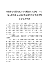 在xx慈善总会暨民政部部管社会组织党建工作站“深入贯彻中央八项规定精神学习教育动员部署会”上的讲话()今天,我们召开这次动员部署会,主要任务是深入学习贯彻习近平总书记关于全面从严治党的重要论述,按照党中央和上级党委的部署要求,在全系统启动中央八项规定精神学习教育。这次学习教育不仅是落实巡视整改工作要求的重要举措,更是推动慈善事业高质量发展,锻造一支忠诚、干净、富于担当精神的干部队伍的政治任务。下面,我代表中华慈善总会党委讲三点意见。一、提高政治站位,深刻认识中央八项规定学习教育的重大意义(一)开展学习教育是检验践行“两个维护”的政治试金石中央八项规定是全面从严治党的重要抓手,是党风廉政建设和反...
