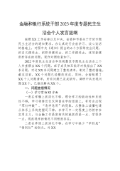 金融和银行系统干部2023年度专题民主生活会个人发言稿提纲