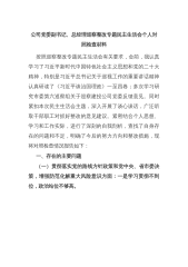公司党委副书记、总经理巡察整改专题民主生活会个人对照检查材料按照巡察整改专题民主生活会有关要求,会前,我认真学习了习近平新时代中国特色社会主义思想和党的二十大精神,特别是习近平总书记关于巡视工作的重要讲话精神认真研读了《习近平谈治国理政》一至四卷;多次学习研究市委第六巡察组关于巡察建投公司党委反馈意见。同时紧扣本次民主生活会主题,深入开展了谈心谈话,广泛听取干部职工对抓好整改的意见建议。紧密结合个人思想、学习和工作实际,进行了深刻的自我剖析,查找了自身存在的问题和不足,明确了今后的努力方向和整改措施,现将对照检查情况报告如下:一、存在的主要问题(一)贯彻落实党的路线方针政策和党中央、省市委决策...