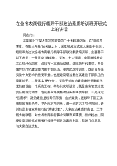 在全省农商银行领导干部政治素质培训班开班式上的讲话同志们:在举国上下深入学习贯彻党的二十大精神之际,在“决战四季度、夺取全年胜”的关键之时,采取视频方式把大家集中起来,组织举办这次全省农商银行领导干部政治素质培训班,主要基于以下考虑:一是贯彻“新精神”。党的二十大强调,全面建设社会主义现代化国家,必须有一支政治过硬、适应新时代要求、具备领导现代化建干力的干部队伍。举办此次培训班,既是贯彻落实党中央要求的重要举措,也是建设堪当重任高素质干部队伍的重要抓手。二是落实“硬任务”。党员干部政治素质建设是新时代党的建设的一个系统工程。举办此次培训班,既是落实管党治党责任的规定动作,也是落实巡视整改任务的...