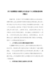 关于巡察整改专题民主生活会个人对照检查材料(精品) 根据市委、区委关于召开巡察整改专题民主生活会的统一部署和要求,会前,我聚焦市委第X巡察组反馈的意见,再次深入学习领会习近平总书记关于巡视工作的重要论述和党的二十届三中全会精神,认真研读《中国共产党纪律处分条例》等党内法规,并与班子成员、分管部门同志、基层党员群众代表广泛开展谈心谈话,听取意见建议。在此基础上,我紧密联系个人思想、工作和作风实际,把自己摆进去、把职责摆进去、把工作摆进去,深入查摆问题,深刻剖析根源,明确了整改方向和措施。现将个人对照检查情况报告如下。 一、上年度民主生活会整改措施落实情况 在2024年度民主生活会上,我针对...