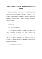 XX局2020年度民主生活会暨巡视XX反馈意见整改专题民主生活会工作方案 根据县纪委、县委组织部《关于认真开好2020年度民主生活会暨省委第X巡视组巡视XX反馈意见整改专题民主生活会的通知》(X组通〔XX〕XX号)文件要求,XX局2020年度民主生活会暨省委第X巡视组巡视XX反馈意见整改专题民主生活会拟定于2021年1月29日召开。为了开好本次民主生活会,现制定工作方案如下: 民主生活会主题 (一)2020年度民主生活会主题 以“认真学习贯彻新时代中国特色社会主义思想,加强政治建设,提高政治能力,坚守为民情怀,夺取决胜全面小康社会、实现第一个百年奋斗目标的伟大胜利,开启全面建设社会主义...