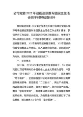 公司党委2022年巡视巡察整专题民主生活会班子对照检查材料(7841字)按照集团党委《XX集团党委及所属二级单位党组织领导班子巡视巡察整改专题民主生活会工作方案》要求,我们结合工作实际,在深刻认识和学习的基础上,党委班子深入开展谈心谈话,广泛征求意见建议,认真对照XX省委巡视整改意见、XX市委专项巡察整改意见、XX市国资委党委专项整改工作意见,深入查摆突出问题,深刻剖析产生问题的主要根源,进一步明确了下步整改措施和今后努力方向。现将对照检查情况报告如下:一、总体情况2022年,在xx集团党委的坚强领导下,XX公司党委以习近平新时代中国特色社会主义思想为指导,牢固树立“四个意识”,不断增强“四个...