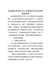 某省金融办党支部2022年度组织生活会对照检查材料(全文3471字)按照党委组织部关于召开2022年度组织生活会的通知要求,办公室党支部组织全体党员认真学习了党的二十大报告及习近平总书记系列重要讲话精神,对照党章规定的党支部职责,对照落实党中央、省委、市委部署要求,对照党史学习教育、巡视巡察、重大腐败案件警示教育等专题组织生活会问题整改情况,紧密联系工作实际,深入查摆党支部工作存在的不足,并深刻剖析问题产生的根源,提出了下一步整改落实的方向和措施。现将对照检查情况报告如下:一、存在的主要问题(一)增强政治功能方面办公室党支部能够始终坚持以习近平新时代中国特色社会主义思想为指导,认真学习习近平总...