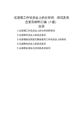 目录(一)讲话发言1.在实施乡村振兴战略专项巡察工作动员会上的讲话..................32.在专项巡视工作动员部署会上的讲话..............................93.牢牢把握“两个维护”根本任务.................................164.扛牢主体责任锻造巡视利剑.....................................195.扎牢织密上下联动监督网.......................................226.完善整改日常监督机制................................