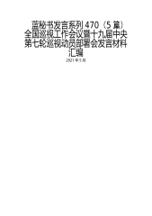 蓝秘书发言系列470(5篇)全国巡视工作会议暨十九届中央第七轮巡视动员部署会发言材料汇编2021年5月目录1.江西省委巡视工作领导小组组长马森述:以系统观念完善巡视巡察战略格局12.山东省委巡视工作领导小组组长陈辐宽:强化巡视整改落实和成果运用33.贵州省委巡视工作领导小组组长夏红民:与时俱进深化政治巡视巡察54.国家卫生健康委党组巡视工作领导小组副组长马奔:发挥综合监督作用推动系统治理75.中国石化党组巡视工作领导小组副组长蒋亮平:以高质量巡视保障推进企业发展9全国巡视工作会议暨十九届中央第七轮巡视动员部署会发言材料汇编(中国纪检监察报,2021年5月13日)以系统观念完善巡视巡察战略格局江...