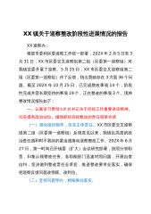 X街道党工委关于X社区、X社区、X社区集体“三资”管理专项巡察整改情况的报告根据市委巡察工作部署,2022年9月至10月,区级交叉巡察第5组对X街道X社区、X社区、X社区集体“三资”管理开展了专项巡察。2023年X月10日,区级交叉巡察第5组向X街道党工委反馈了巡察工作情况。按照巡察工作有关要求,现将巡察整改进展情况报告如下。一、被巡察党组织履行巡察整改主体责任情况各被巡察社区党委、股份公司党支部高度重视巡察反馈问题,全面落实整改主体责任。街道党工委全面统筹,逐个指导,推动各被巡察单位整改落实。一是召开专题会议。组织召开社区党委会、股份公司党员大会,集体学习习近平总书记关于巡视巡察工作的重要论...