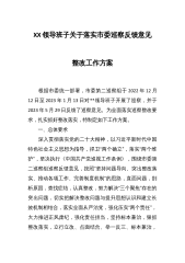 XX县民政局党组落实县委第一巡察组巡察反馈意见整改工作实施方案 按照县委统一部署,县委第一巡察组于2023年4月初至6月底对县民政局党组开展了常规巡察。2023年8月3日,第一巡察组巡察县民政局党组工作意见反馈会在我局召开会上指出了3个方面26个突出问题,提出了明确的整改需求。为全面做好巡察反馈意见整改工作,确保整改工作有序有力推进,推动全面从严治党不断深入,结合我局实际特制定以下整改方案。 一、总体要求 以A新时代中国特色社会主义思想为指导,全面贯彻党的二十大精神和A巡视工作思想,按照县委巡察工作实施意见和“即知即改、立行立改、全面整改”的巡察整改要求,始终坚持问题导向,全盘认领反馈意...