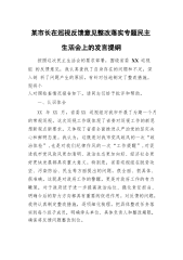 某市长在巡视反馈意见整改落实专题民主生活会上的发言提纲