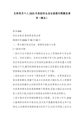支部党员个人2025年度组织生活会查摆问题整改清单(精品)姓名:XXX所在支部:区委政研室党支部填报时间:2026年XX月XX日一、带头强化政治忠诚、提高政治能力方面(一)具体问题一是对习近平新时代中国特色社会主义思想的学习存在碎片化、浅表化倾向。在参加支部集中学习时,能够认真记录,但在承担政研任务时,运用党的创新理论分析研判重大问题的能力不足,撰写的调研报告有时缺乏深层理论支撑,停留在现象描述层面,理论指导实践的转化力不强。二是政治执行力存在“照单抓药”的惯性。在贯彻落实区委决策部署时,侧重于完成交办的具体文稿任务,对上级精神的系统性把握和主动延伸思考不够,在起草相关文件时,有时对政策背景和...
