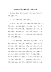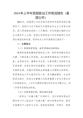 2024年公司上半年政治生态情况分析研判报告2024年上半年,集团党委坚持以习近平新时代中国特色社会主义思想为指导,全面贯彻落实党的二十大和二十届二中全会精神精神,围绕中心大局,立足职能职责,全面推进党的建设各项工作赋能提优,持续巩固发展良好政治生态。现将上半年政治生态情况分析研判如下:一、主要工作开展情况(一)“三个抓手”强化政治建设。延伸政治统领“机制链”。严格落实“第一议题”制度,把政治统领贯彻到党委、党支部、工会等各级党组织和群团组织决策部署全过程,将“两个维护”体现到推动中心工作各环节。严格落实意识形态工作责任制,组织学习研讨和分析研判,定期掌握全局总体态势;开展清查整改,将“党管意...