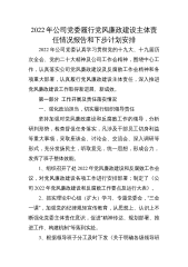 2022年公司党委履行党风廉政建设主体责任情况报告和下步计划安排