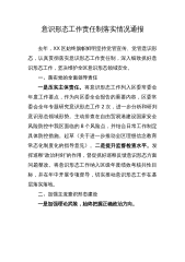 意识形态工作分析研判报告三篇意识形态工作分析研判报告1意识形态工作是党的极端重要工作,旗帜、道路、政治安全。根据市委宣传部的要求,20XX年度意识形态工作分析研究情况报告如下一、思想高度重视,加强组织领导。重视意识形态工作,认真执行书记抓和抓书记工程。明确要求党组领导班子对意识形态工作负主体责任,党组书记是第一责任人,管理领导是直接责任人,协助党组书记统一协调指导工作。党组其他成员根据工作分工,根据一岗双责任的要求,主要抓住管理科和基层部门的意识形态工作,对责任范围内的意识形态工作负责。党组书记是所属部门的第一责任人,直接抓、亲自抓,切实解决意识形态工作中存在的实际问题。二、认真组织学习,不断...