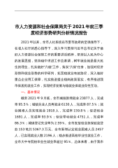 市人力资源和社会保障局关于2021年前三季度经济形势研判分析情况报告