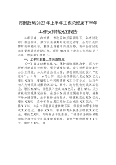 市财政局2023年上半年工作总结及下半年工作安排情况的报告今年以来,在市委、市政府的坚强领导下,全市财政部门担当作为,多方设法破解财政收支矛盾,全力以赴保障财政平稳运行,整体呈现稳中向好态势,获评全省财政高质量发展先进设区市。现将2023年上半年工作总结及下半年工作安排汇报如下。一、上半年主要工作完成情况(一)全力以赴抓收入,保持较快增长态势。深入分析研判财政运行形势,强化调度协调,成立财税共治集中办公工作组,加大综合治税力度,顺利实现财政收入“双过半”。今年1-6月全市一般公共预算收入完成X.X亿元,增长X.X%,增幅较上年同期提高X.X个百分点,达到年初人大审议通过数的X.X%,其中:地方...
