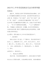 2023年上半年局党组政治生态分析研判报告范文