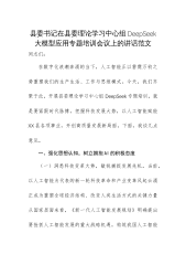 县委书记在县委理论学习中心组DeepSeek大模型应用专题培训会议上的讲话范文同志们:在数字化浪潮奔涌的当下,人工智能正以雷霆万钧之势重塑我们的生产生活、工作与思维模式。今天,我们齐聚于此,开展县委理论学习中心组DeepSeek专题培训,就是要紧跟时代脉搏,把握科技发展大势,以人工智能赋能XX县各项事业,开创高质量发展新局面。下面,我谈几点意见。一、强化思想认知,树立拥抱AI的积极态度(一)洞悉科技变革大势,敏锐捕捉发展先机。当前,以人工智能为代表的新一轮科技革命和产业变革风起云涌正成为重塑全球经济结构、改变人类生活方式的关键力量从国家层面来看,《新一代人工智能发展规划》明确提出要抢抓人工智能...