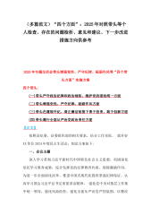 11篇“四个带头方面”范文——2025年带头履行全面从严治党政治责任、在遵规守纪、清正廉洁前提下勇于担责、敢于创新等检查材料、存在问题原因检析、下一步整改措施国企2025年领导班子带头履行全面从严治党政治责任方面等“四个带头”个人对照检查材料按照《关于开好2024年度党员领导干部民主生活会的通知》要求,会前,党委班子集体深入学习领会习近平总书记重要讲话重要指示精神,认真学习党章、《条例》等党内法规,深刻领会进一步全面深化改革的重大意义,班子成员和干部职工进行了谈心谈话,征求了各层次、各方面的意见和建议,重点围绕5个方面认真查摆问题,进行党性分析,深刻检视反思,从思想根源剖析问题产生的原因,明确...