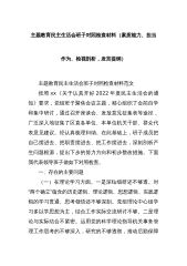 主题教育民主生活会班子对照检查材料(素质能力、担当作为、检视剖析,发言提纲)主题教育民主生活会班子对照检查材料范文按照xx《关于认真开好2022年度民主生活会的通知》要求,党组班子聚焦会议主题,精心组织了会前自学和集中研讨,通过召开座谈会、发放意见征集表等途径,广泛深入地征集了区直各单位、本单位机关干部、群众代表意见建议。经认真梳理归纳。在此基础上,班子成员把自己摆进去、把职责摆进去、把工作摆进去,深刻剖析产生问题根源,提出下步的努力方向和初步整改措施。下面我代表领导班子做如下对照检查。一、存在的主要问题(一)在理论学习方面。一是深钻细研还不够透。对“两个确立”蕴含的历史逻辑、理论逻辑、思想逻...