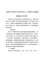 X局关于开展20xx年形式主义、官僚主义问题自查整改工作方案按照中共XXX纪委印发的《集中整治形式主义、官僚主义问题20xx年行动举措》和纪委驻局纪检监察组《关于开展20xx年形式主义、官僚主义问题自查整改工作的通知》要求,局机关将开展20xx年形式主义、官僚主义问题自查整改工作,结合我局实际制定本方案:一、目标任务对照《关于解决形式主义突出问题为基层减负的通知》《关于贯彻落实XJP总书记重要指示精神集中整治形式主义、官僚主义的工作意见》和《关于防治形式主义官僚主义的若干措施》等三个文件要求,坚持问题导向,通过自查自纠、列出问题清单、制定整改措施、彻底整改问题的步骤,着力解决形式主义、官僚主义...